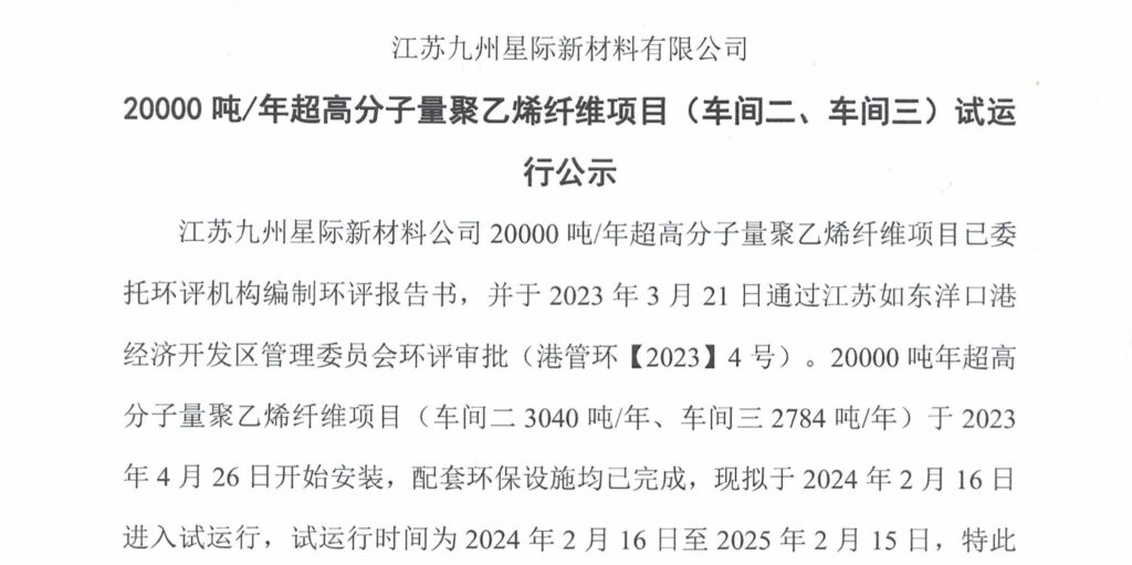 九州星际是目前国内规模最大的超高分子量聚…
